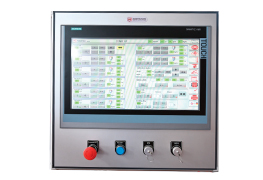 PLC–HMI controls speed, temperature, vacuum, and torque, with recipe monitoring and optimization.
